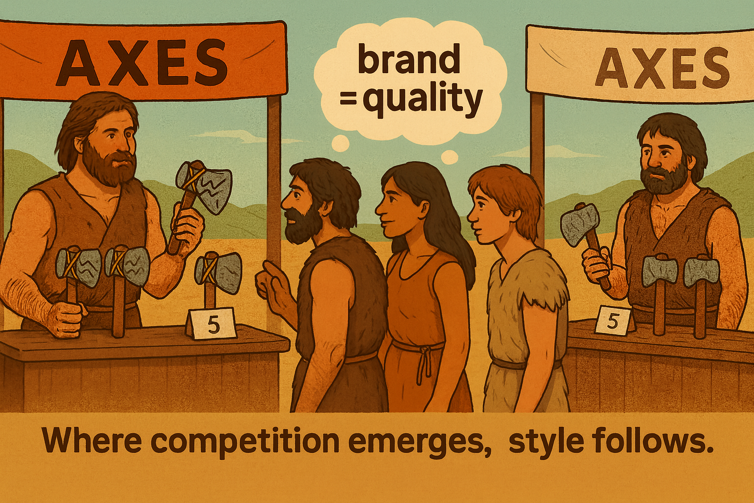 It is still impossible to say exactly when commodity exchange and monetary relations truly began. Archaeological finds leave space for speculation: shells that served as ornaments may have been signs of aesthetic taste — or evidence of trade. But at some point, exchange ceased to be occasional and became systematic. And that, in turn, accelerated the development of human culture. If I make a stone tool only for myself, I don’t need to decorate it with patterns. But if I want others to choose my tools over someone else’s, the pattern becomes a mark of quality, the first logo, a proto-brand. Where competition arises, style follows. Where markets emerge, culture emerges.